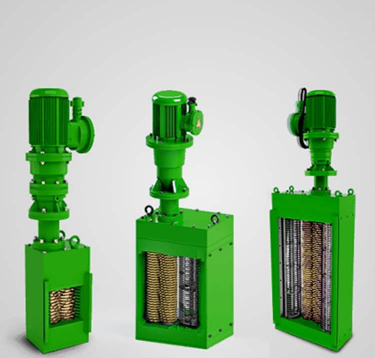 粉碎型格柵由干濕兩用防爆電機、變速箱、變速器、刀片、立式滾筒、密封、安裝支架、溢流格柵、潛水電纜、備用手動格柵等組成的粉碎格柵清洗機。電機啟動后,葉片和立式滾筒以不同的速度旋轉,污水進入滾筒區并送到切割區后,旋轉柵格截取污水中的固體浮物。采用差動旋轉的兩組葉片在軸向和徑向快速切割。它被粉碎成6~10 mm的小顆粒,大部分其他污水和足夠小的顆粒直接通過滾筒區域,破碎后的小顆粒隨著水泵的抽水而流動。
